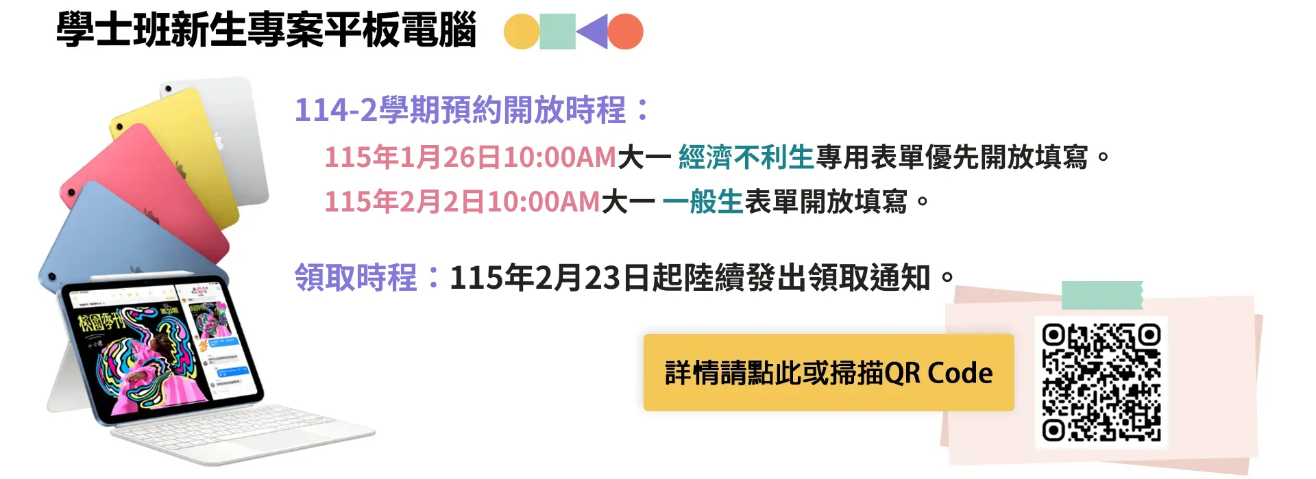 114-2學期大一新生平板借用申請即將開放