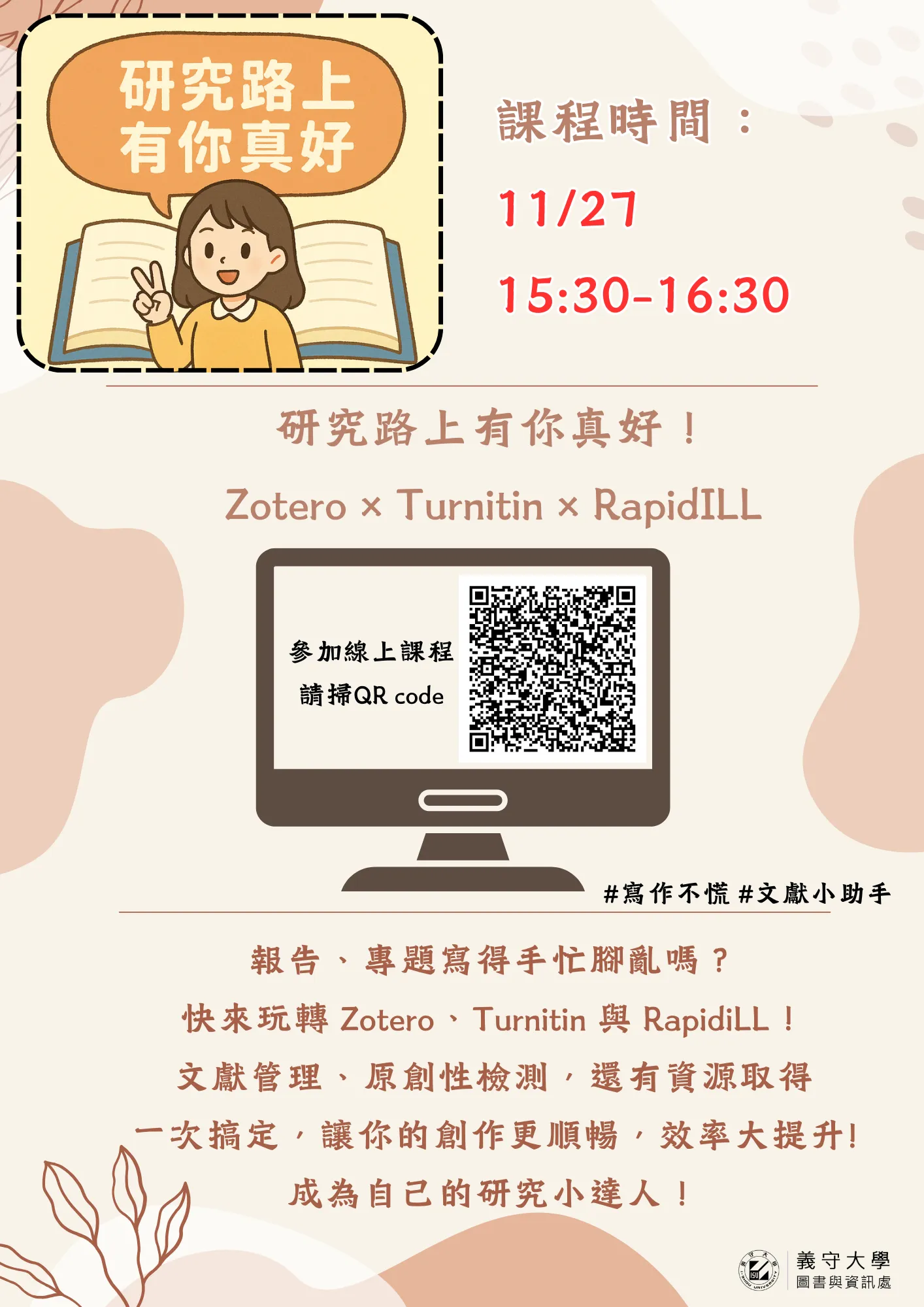【日期調整】研究路上有你真好!Zotero × Turnitin × RapidILL